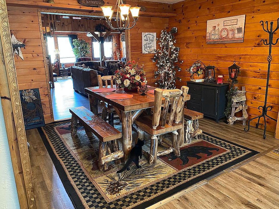 Much of this home is tongue and groove wood, which provides a very warm, log cabin, rustic feel. The large gas fireplace (in the main family room), keeps things, warm and cozy through the winter. The other part of the house has a real, wood-burning fireplace, which is a nice feature if you have the energy to gather the wood for it. The loft in the main family room provides a good deal of extra space for guests. The kitchen has an Amish custom built bench and table which we added when we remodeled the kitchen in 2004. It’s very convenient for informal meals - eating in the kitchen. Being a ranch style home and having the washer and dryer in the utility/2nd full bathroom has made life much easier. It’s not something people typically think about when they’re younger, but as you get older, not having to go up and down steps to do laundry is a gift! The addition we put on in 2006 provided a really nice foyer into our home, leading into a spacious dining area. Overall, the home is very spacious, with very sought after, open layout.