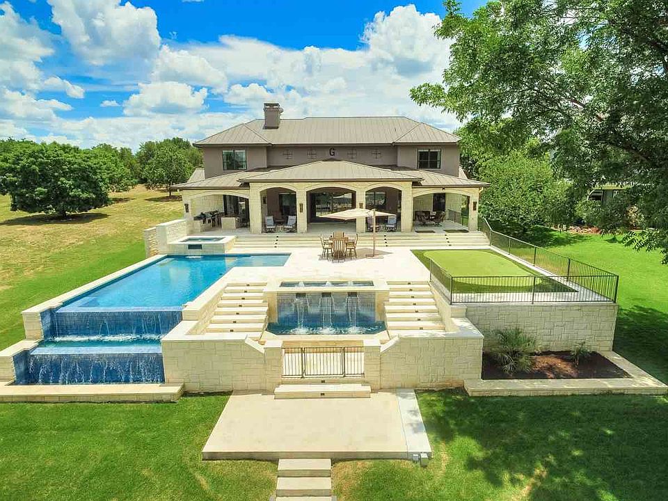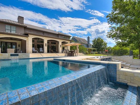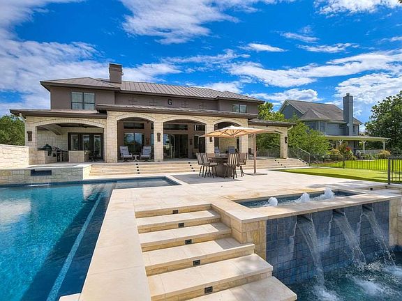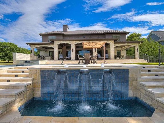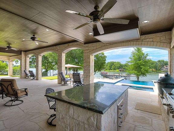 Stunningly beautiful custom home on the Colorado Arm of Lake LBJ, quite and serene location in the gated community of Kingsland Ranch. A large tree covered yard gently slopes to the waterfront where you will find 102' ft. of beautiful, deep, North facing open water encompassing miles of breath taking views over the blue waters of Lake LBJ. A huge patio with outdoor kitchen overlooks the fantastic negative edge pool with hot tub, sunning deck and water features, as well as your own private putting green. Lakeside upper deck & entertaining areas above the boat house. What a wonderful place to spend time with family and friends enjoying the perfect place on Lake LBJ! After a day of splashing in the water you can retire to the outstanding custom built lake house where every detail has been considered, from the grand staircase entrance to the gourmet kitchen and relaxing open concept living area with fabulous fireplace and wet bar. A luxurious master suite overlooking the lake! A second guest bedroom with full bath downstairs, then a family/entertaining room on the second floor and two additional large guest suits each with en-suite baths. A massive bunk-room or media game room encompasses the space above the large 3 car garage providing so much additional space for fun! Truly a fantastic lake house that offers stunning detail and is everything you could desire and more!