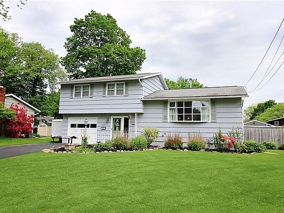 Wonderful Liverpool area split level with full fenced and treed yard and in-ground pool, close to everything! This split level boasts multiple living areas, one full and two half baths, generous bedrooms, well maintained landscaping and hardwood floors. Possible 4th bedroom/"mancave" on lower level. Updates include a brand new pool liner to be installed this month, kitchen and bath counters and bath flooring, and more. Lovely neighborhood, lovingly maintained home, and all at a great price. Showings begin 6/4 at the open house!