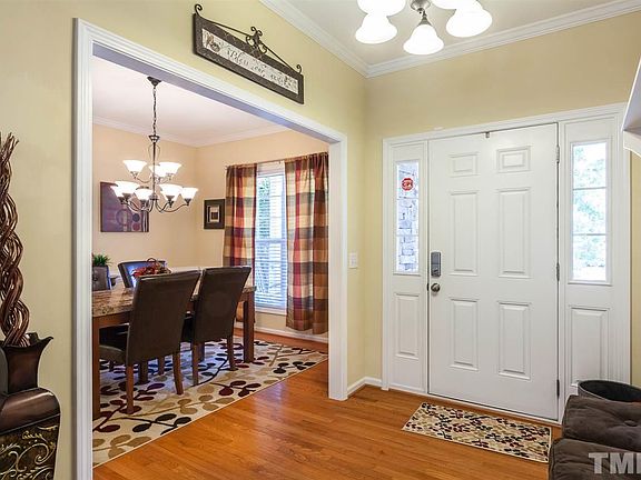 Beautifully maintained 2 story home in great Garner location! Rocking chair front porch great for relaxing in the evenings. Inside you'll enjoy a separate dining room, butler's pantry, SS appliances, glass tile backsplash, and recessed lighting. Crown molding t/out first floor and wired for security system.Upstairs hosts a generous sized master bedroom w/ en suite, 2 secondary bedrooms and a spacious bonus room. Enjoy bbqing on the deck while entertaining in the large private fenced in backyard!