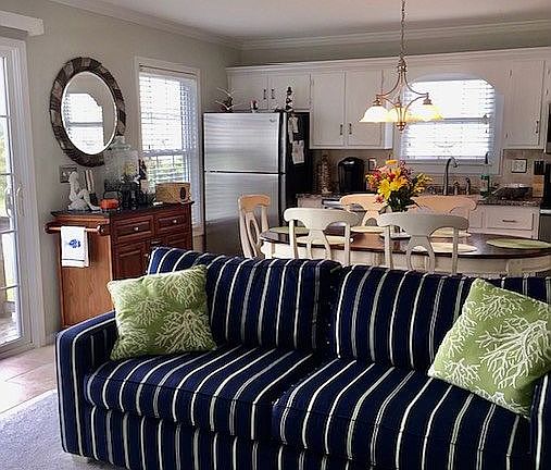 This home has 3 bedrooms & 2 baths & is located in the Club Colony neighborhood. The home had an extensive interior renovation & new metal roof completed in 2019. It is tastefully decorated & furnished, which includes an electric fireplace & stainless steel appliances. The back two bedrooms, which includes the master, has access to the covered decks through sliding glass doors. The covered decks run along the length of the house & across the back. Both back bedrooms & the decks have ocean views. There is a laundry room located under the house in the carport. Also, located under the house is a spacious outside shower that includes a changing area. The large backyard is well suited for entertaining & grilling. The home is located on the third row from the ocean & is only a few minutes walk to the beach.