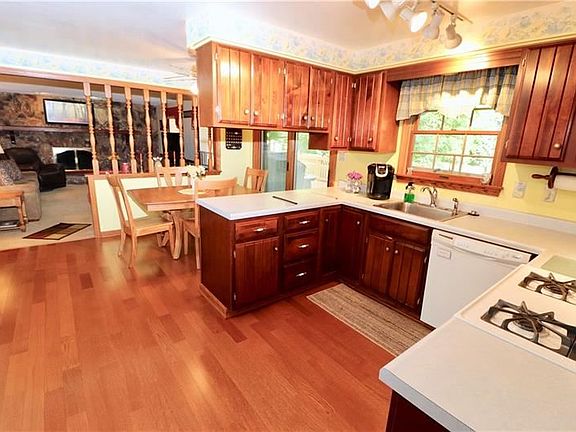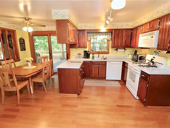 Welcome to your dream home! 102 Rockrose Road in Baden. Stunning 4 Bedroom, 2.5 bath, 2 car garage on 1.16 Acres. Fully equipped eat in kitchen with wood stained like Cherry cabinets in "C" shaped kitchen with light blue countertops, pantry, and newer new engineer maple wood planking. Kitchen opens to family room with stone gas fireplace. Formal Living room, Dining, entry, laundry, and half bath on main. EIK includes sliding glass with enclosed blinds that opens to back deck. Wonderfully sized Master Suit includes walk in closet 11x6 & full bath 10x7 is on 2nd fl along w/ 3 additional bedrooms & a full bath (11x6). 40x26 basement can be finished. 22x15 Covered deck (with storage above) with open 19x15 deck. 23x18 cement patio. Includes buildable extra side lot. 150 amp box, House roof '08 (25 yr shingles), deck roof '06, all floors on 2nd fl '19, H2O tank '12, HVAC '06. Windows '92. Close. Garage wired for generator backup.
