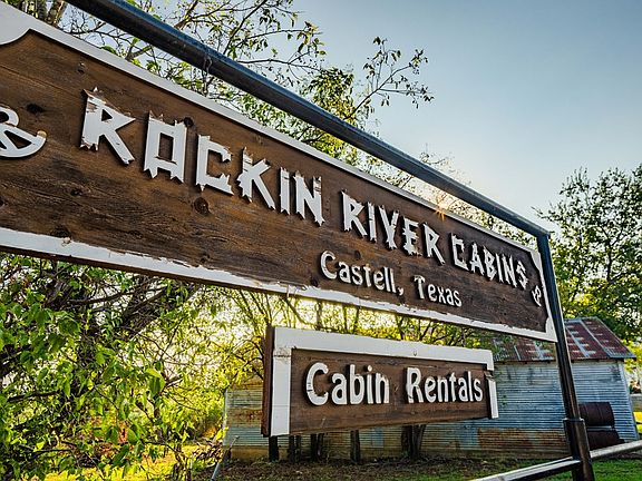 Prime Llano River property in the heart of Castell. Four cabins, two-2 bed/2 bath cabins with sleeper sofa, accommodating 6, that adjoin each other w/large Dog-Trot style deck overlooking the river (952 SqFt each). Two-1 bed/1 bath cabins w/sleeper sofa, accommodating 4 (447SqFt each). Escape the city lights & enjoy starry skies of the Hill Country while sharing stories around the fire. Soak up the morning sun on the deck, and enjoy fishing, swimming, kayaking, or floating the beautiful Llano River. Residential & investment potential. A true retreat for the entire family!