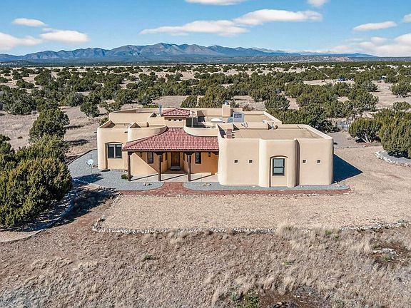As you come up the private drive to the custom SW gate, you know you have arrived at home. Each evening you watch the sun set on the Manzano Mountains. You never tired strolling along the walking trails to admire the night sky full of stars. You wake every morning renewed to take in the breathtaking views again. Custom cabinets and red dragon granite counters make it a pleasure to drink coffee at the kitchen bar. This is your dream home with two separate offices or turn them into bedrooms. Cozy around the wood stove in the living room that opens to the dining area and onto the large covered patio with room to entertain. Each detail of this home is designed to bring you joy and provide you with your own personal paradise on 40+/- wooded acres in the heart of the Land of Enchantment.