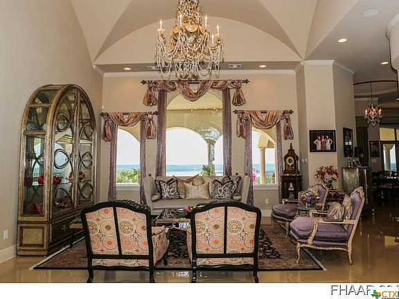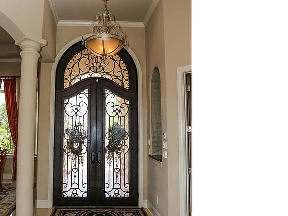 Truly remarkable Mediterranean style executive home with amazing lake view. Drive through the security gate onto the circular courtyard with a center fountain. Step through the custom iron doors into an elegant foyer with travertine floors and a beautifully tiled art niche. The large picture windows in the formal living area with a barrel style ceiling provide a stunning lake view. The formal dining area to the right of the foyer is separated by columns and offers a bay window and a step ceiling with crown mouldings. The study to the left of the foyer offers wood floors. Make your way past the elegant wet bar and step into the chef's dream kitchen with granite counters, an expansive breakfast bar, a large central island with built ins, a gas stove with oversized oven, a built in oven, a warming oven, a large pantry and abundant cabinet and counter space. The breakfast area boasts circular built in seating and a picture window view of the lake and pool. The Family Room is equipped with a central fireplace flanked by arched recessed built ins with glass shelving, an octagon ceiling, walls of windows and French Doors offering a beautiful view of the lake, the pool and the expansive Mediterranean covered porch with outdoor kitchen, large bathroom and a storage closet. When you are not relaxing outdoors, you will find yourself in the Owner's Retreat. The Master Bedroom features large walk in closets and a bay window view of the lake and French doors leading to the covered porch. T