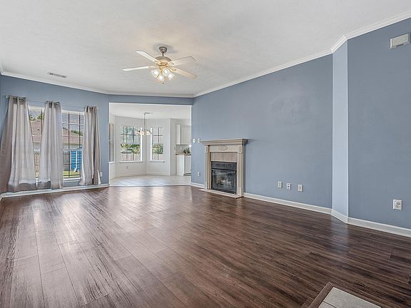 Great corner lot home in Blooming Ridge subdivision! Fabulous open concept living, kitchen and dining area features an inviting gas logs fireplace. Updated LVT flooring and paint create warmth throughout the house. Primary ensuite includes two walk in closets, double sink vanity and ample space in the bedroom. Plenty of storage, including outdoor storage shed and floored attic over the garage. Outdoor entertaining spaces include a covered patio and outdoor patio in the fenced back yard. Don’t wait to schedule your personal showing, welcome home!
