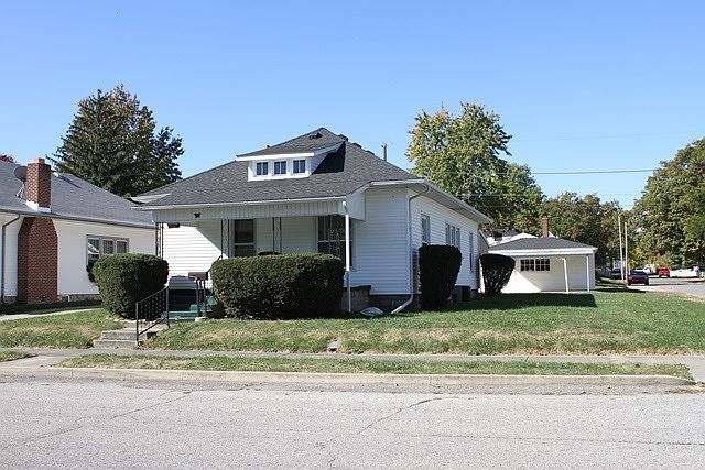 Cute bungalow with a covered front porch and over 1200 sf of finished living space plus an unfinished attic and large basement. Home has all original tall baseboards, panel doors, hardware and natural woodwork. Hardwood under the carpet. Very large, open great room could be split and used as LR and DR. 2 bedrooms plus open attic could be used for additional living space, bonus room, or storage. Kitchen with lots of cabinet and counter space - also desk/work area. Lots of quality, original condition. Large corner lot with nice backyard and huge side yard. New roof in 2012. Detached garage and carport. over 600sf of basement - great for storage and utilities. Nice covered back patio.