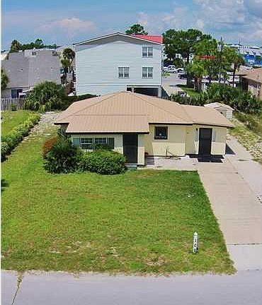 This is the least expensive beachside home currently on the market. 3BR/2BA, all on one level with a gulf view. This home is conveniently located easy walking distance to the beach, restaurants and shops. New roof and AC/Heat within the past two years. Desirable X flood zone. Vacation rental potential. No HOA fees! Call today for more details and showings.