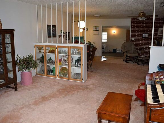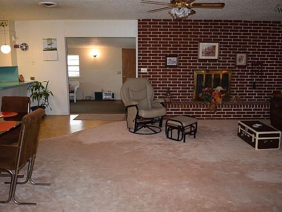 Spacious home with open living and dining. Woodburning fireplace, 2 living areas, great kitchen with loads of cabinets, laundry off kitchen and garage with full bath. Great room sizes and endless possibilities. Garage is presently a one car garage but could be turned back to the original two. Presently has work and storage area. Also features 2 car-carport.