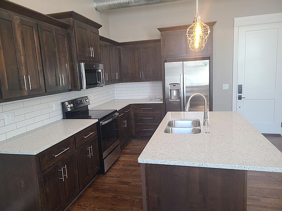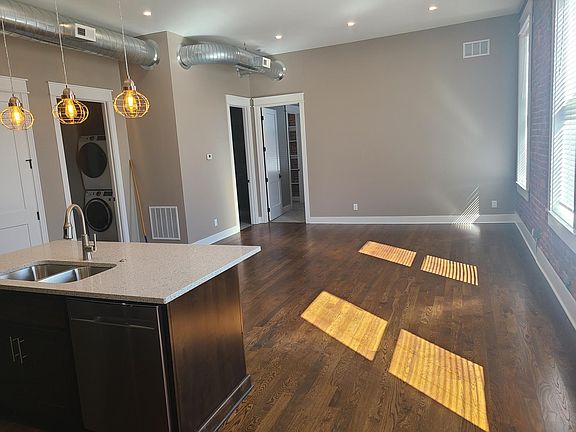 Newly constructed loft apartment overlooking historic downtown Smithville. This 2nd floor unit is located in the heart of downtown and has private, secured access. There are only 2 units on the 2nd floor of the building. Walking distance to local bars and restaurants with a coffee shop located on the 1st floor of the building. It offers views overlooking the Downtown Courtyard park. This is a very spacious unit with very large bedrooms and walk in closets. The entire space has soaring 12' ceilings showcasing the industrial, spiral duct work. The unit features high end finishes throughout including quartz countertops, custom cabinetry, custom tile in both bathrooms, solid hardwood floors in the main living space and stainless steel appliances. The kitchen features many cabinets providing ample storage and a quartz island, ideal for entertaining. There is a separate, in unit, laundry room with a full size washer and dryer. All appliances and the heating and cooling system are energy efficient. Tenant is responsible for electric and gas service, water service and trash is included. High speed, gigabit, fiber internet is available and already installed in the unit, tenant to pay for the required level of service. Renter responsible for electric, gas and internet service. Landlord pays water and trash.