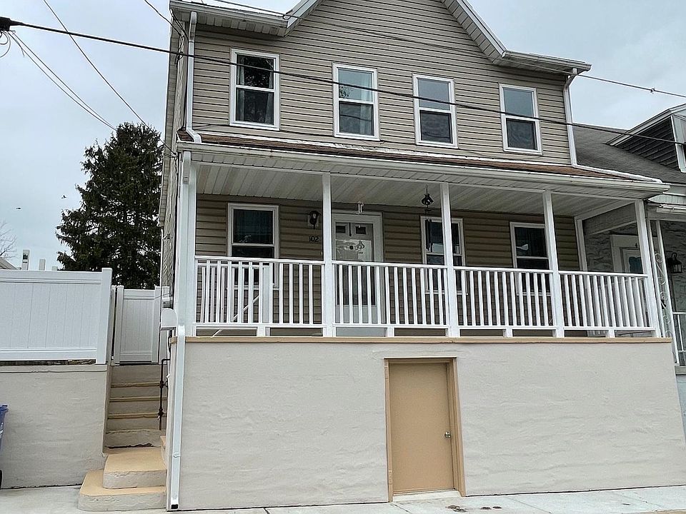 You will be wowed by how beautifully this spacious semi detached home has been remodeled! The covered front porch provides a welcoming entrance way into the oversized living room which was previously two rooms. The eat in kitchen offers beautiful cabinetry, granite countertops, double bowl stainless steel sink, black stainless steel appliances, and ceramic tile flooring. The dining room is currently being used as an office/den. The first floor is complemented with a modern half bath and a laundry area accommodating a full size washer and dryer. The second floor primary bedroom has a sitting room and bathroom with a tiled shower. The other two bedrooms have ample closet space and share the second modern, full bathroom. From the kitchen you can exit to the enclosed back porch which has a fireplace (currently non-working) and a wall of windows that overlooks the back yard. The backyard is spacious and a good portion of it is fenced in. If you wanted off street parking, you could potentially pave a portion of the unfenced back yard which is adjacent to the alley. The furnace and hot water heater are natural gas, and with summer just around the corner, you will appreciate the central air conditioning.