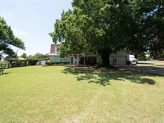 This home is located in Edgewater Park which is a short drive to Lawton and Fort Sill and sits on a corner lot that is about .7 acres +/-. The home offers 3 bedrooms, 2.5 baths and 2 car garage. The family room is spacious and has a wood burning fireplace and opens up to the dining room. This kitchen has been redone and has ample cabinetry and counter space. There is a large walk in pantry under the staircase. Off the kitchen is a sun-room that is perfect for morning coffee and relaxing. Downstairs you have 1 bedroom and full bath and upstairs 2 bedrooms with 1.5 bath and a large walk in closet that could also be used as an office. Outside you have mature landscaping and trees, 24 x 30 shop with concrete floor, overhead door, 6 big windows, butane heat overhead heater and large butane tank outside for fuel and is on a separate electric meter and two large storage sheds, well with new pump and many other great amenities. You are walking distance to the lake, kids can play outdoors and other outdoor activities. The owners have made many great improvements to the home that you need to come see for yourself.