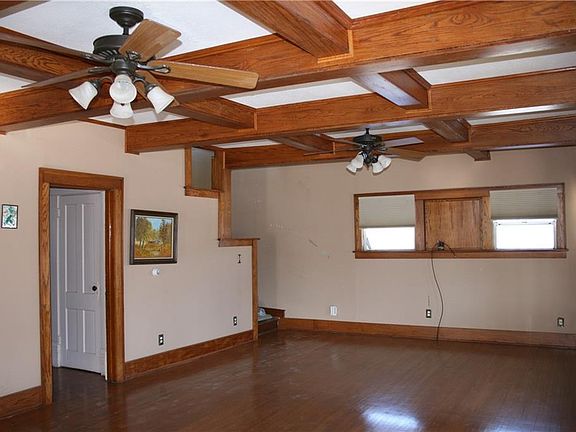 Lots of Character with this four bedroom home. Large living room with crisscross oak ceiling beams, hardwood floors, and French doors to the Sunroom. One bedroom on the main level and three large bedrooms in the upper level. One three quarter bath and one full bath with claw foot tub. Recent kitchen remodel with large pantry and office area. Nice enclosed sitting porch and a private patio. Huge four car garage that is a hobbyist dream. New garage doors are on order. Large corner lot with alley access.