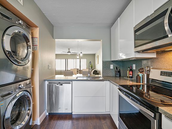 Beautifully remodeled, first-floor corner unit backs to expansive greenbelt and canal. This condo has two bedrooms and two baths, ample storage, and an enclosed Florida room. Kitchen features modern white lacquer cabinets and quartz counters, with in-unit washer and dryer. Master has walk-in closet with built-in's and fully remodeled bathroom. Come see this lovely home and make it your own! Laurels is an exclusive community requiring: 650 Credit, 40% DTI Ratio, 3 Years Ownership Prior to Renting, and 18 Months of HOA held in Escrow.