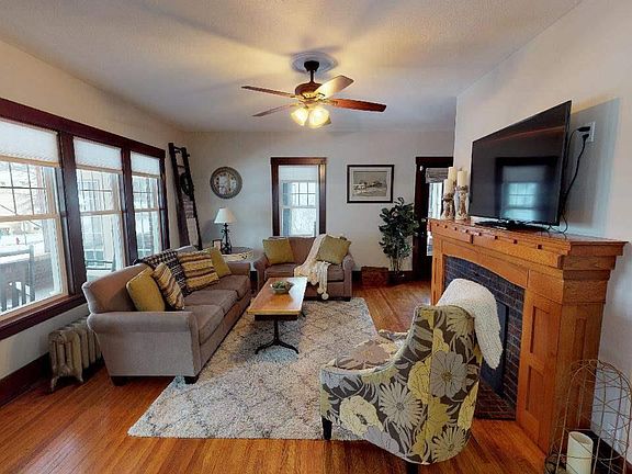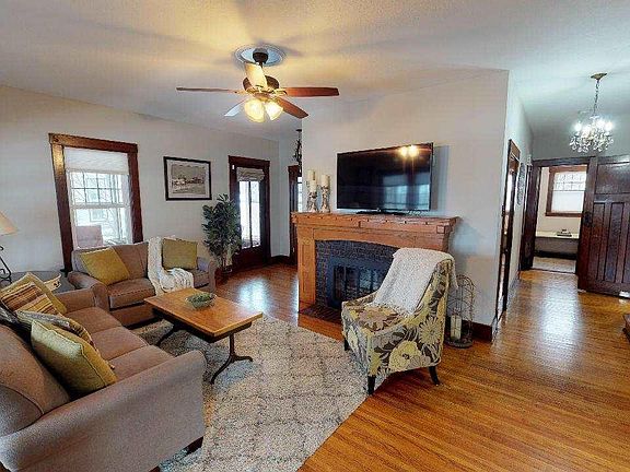 Built in 1921, this two story expansive brick foursquare home sits on a corner lot and is located on a brick street in the Historic District of Mt. Carroll. Only a short walk to downtown, courtyard square, and the library. 4 bedrooms including a master en-suite, 3 total baths, 1st floor laundry, formal dining room, plus an office/den. Features natural woodwork, french doors, 9' ceilings, wood burning fireplace, walk-up attic, and an inviting front porch with wood ceiling & wood floors that wraps around to an enclosed 3 seasons porch. Generous closet space throughout. Spacious kitchen with island. Large basement with plenty of storage or space for a workshop. Recent updates include a radon mitigation system, a tankless water heater, energy efficient windows throughout the main floor, a new over-sized 2½ car garage, a remodeled main floor bath and a remodeled master bath. One of Mt. Carroll's finer homes. Rumor says this house was originally built as a boarding house to house students from Frances Shimer School. Come see the original charm for yourself. Mt. Carroll is located in Carroll County, which has picturesque rolling hills, parks, and many quaint small towns. Located only 2½ hours from Chicago, and 10 minutes east of the Mississippi River.