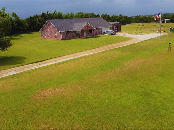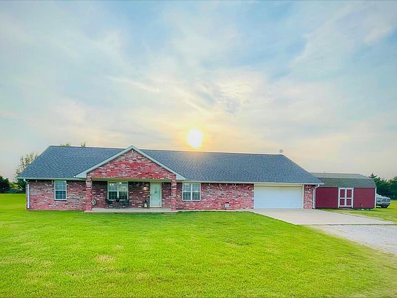 Rare Find! Recently Back on Market, This is Your Opportunity to Own over 3 Peaceful Acres with Beautiful Front Porch Views. The kitchen includes all stainless appliances, Corian countertops, tons of cabinets and pull-outs and is open to the Living Room, perfect for entertaining friends and family. This All Brick Ranch Style home has a split floor plan with oversized rooms, walk-in closets in each with solid wood shelving and plenty of storage throughout. The Laundry room includes an extra pantry and cabinets on two walls, folding counter, access to the backyard and the extra large 600 sf garage with storm shelter. The master has double walk-in closets and the master bath has a large jetted soaker tub and double sinks. Wide open space inside and out this comfortable and relaxing family home is a must see! Vivint Security System and doorbell. All Appliances stay including refrigerator and water softener unwarranted by seller.
