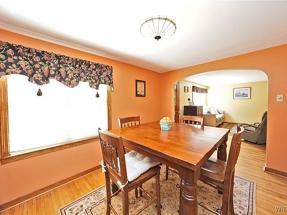Classic Brick Colonial Cape on fenced double lot w/ 2.5 car garage on lovely neighborhood street. Perfection and quality finishes from the front porch to the rear patio. The home offers the ability to enjoy both formal and casual living. The front entry foyer opens to the formal living rm and dining rm with hardwood floors and natural woodwork while the extra large family rm/dinette combo w/ gas fireplace and solid wood paneled walls offers a relaxing space and steps to the covered patio and yard. The kitchen centers the home with wood cabinets, garden window and all appliances. Choose your primary bedroom on the 1st floor or the equally large bdrm upstairs with great office/den space and 3rd bdrm. Fully remodeled modern, tiled bath w/ whirlpool tub. More living space in the finished, divided basement. Rec Room with bar, ( Bar stools and small refrigerator included), separate workout room, den, storage, laundry room. Affordable city taxes on border of West Seneca. See attachment with updates. Opportunity to own a move-in ready home.