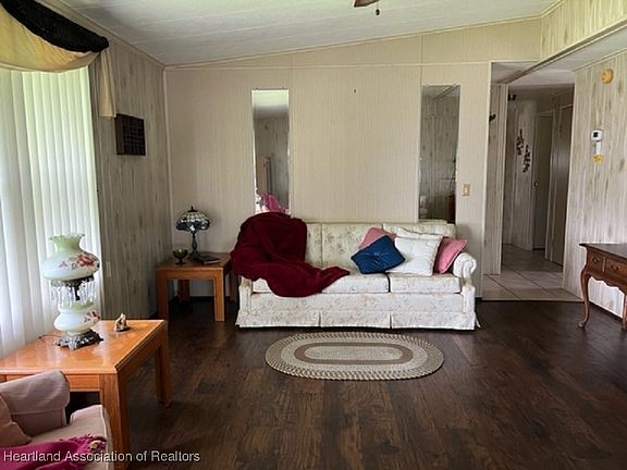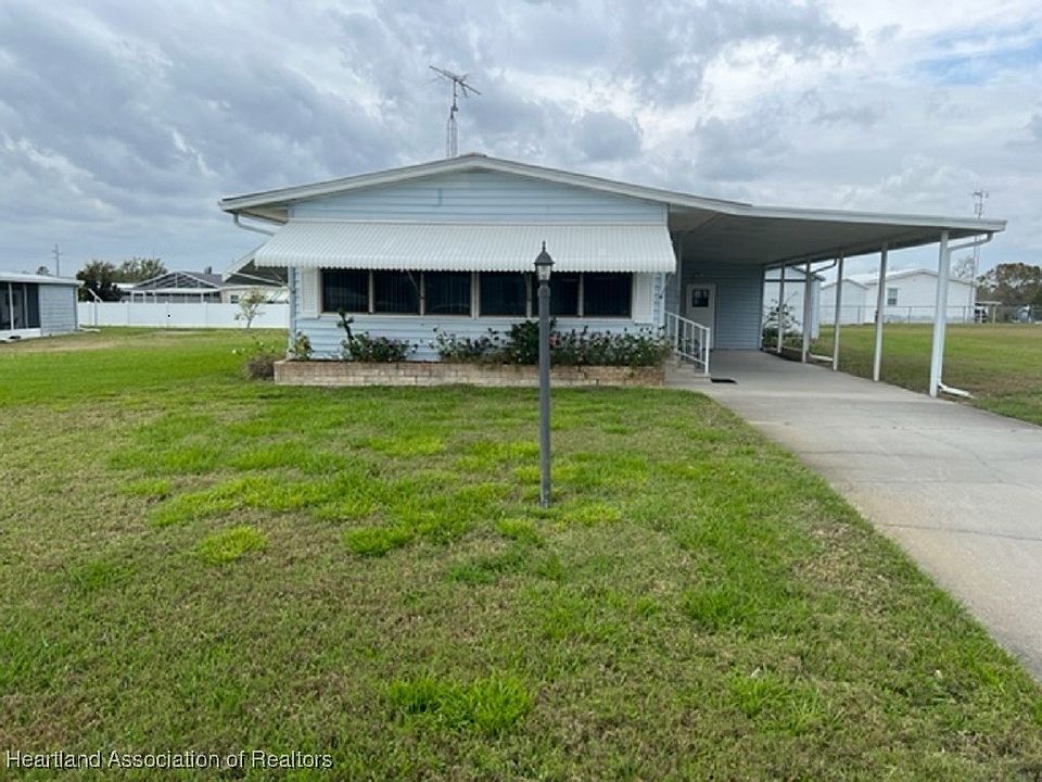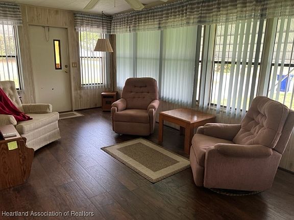 LOOKING FOR A GREAT PLACE TO RETIRE OR WINTER? This very spacious 2-bedroom 2 bath features a finished sunroom across the front, newer wood laminate and tile flooring throughout (per owner), a breakfast bar in the kitchen and lots of storage. A few of the other features include a 10 x 10 laundry room under the extra-long (12 x 43) carport, a 10 x 16 shed with electric, irrigation with its own well and a new metal roof in 2022. This property is tucked away off the beaten path in "The Knoll" subdivision on OWNED land, NO LOT RENT! Amenities include a community center for card games and potluck dinners plus a shuffleboard court. Conveniently located close to shopping, restaurants and medical. Also, only a couple of hours to either coast, Florida attractions or airports.