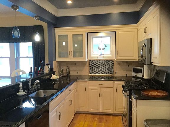 Want to live at the Shore? This is the home you have been looking for. Located on a highly sought out street in Ventnor this home is just 6 houses from the beach. The open floor plan with hardwood flooring throughout most of the 1st floor is a wonderful entertaining home. The kitchen is upgraded and modern, with stainless appliances, quartz counters, beautiful tiled backsplash, crown moldings and a laundry room and separate bath off the back. The living room features a gas fireplace and is spacious. The family room in the front of the home is warm and cozy with three walls of windows for spectacular views. The Master bedroom on the 1st floor is designer decorated with plenty of space. The full bath on the 1st floor is large and private. The second floor has 2 nice sized bedrooms with a private full bath for that floor. The basement is finished and the back patio has beautiful pavers and great for entertaining. The home has a neutral decor', plenty of storage, a full garage and is move in ready, This home shows pride of ownership and will not last. Make your appointment today.