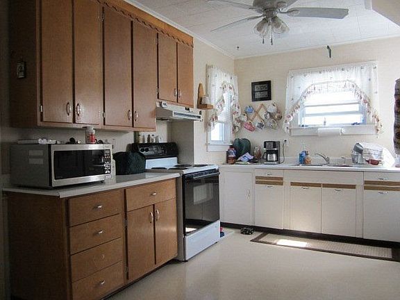 Move in ready 2 story home on corner lot(2 paved driveways) 4 bedrooms. 2 bath. Lots of original woodwork. Many updates include updated bathrooms,newer roof,vinyl replacement windows. Covered patio area and covered front porch. 1st floor laundry-in pantry and security system. Wonderful wooden staircase and another set off the kitchen for added convenience. This is a must see close to the hospital,schools and many amenities. Perfect spot to watch parades from the porch or balcony!!! 655.00 per month with 100% financing!