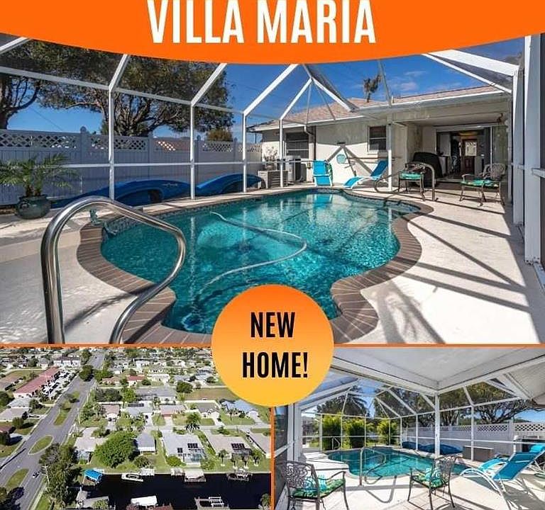This is a VACATION RENTAL Only. Owner will not consider an annual rental. Weekly rentals permitted. Villa Maria is a cozy place for your Florida getaway. This vacation villa is conveniently located on the corner of Santa Barbara Blvd & 40th Street in SE Cape Coral on a Gulf Access canal. This traditional Florida style 3-bedroom, 2 bath pool home has recently been remodeled. This split bedroom floor plan on 1,472 sq ft living space is perfect for families or a group of friends. Villa Maria is only a short 5-minute drive to various restaurants, bars, shopping centers & only 10 minutes from Tarpon Point Marina. Upon entering you will find the living room to your left with comfortable couches, bay windows & flat-screen TV perfect for family movie nights. The open floor plan also allows easy access to the dining area with seating for six. The galley style kitchen is fully equipped with newer appliances, granite countertops, a wine cooler & offers plenty of counter space to prepare your meals. There is a lovely island that provides additional seating & is perfect for a quick breakfast or brunch. The master bedroom has a Queen-sized bed, flat-screen TV & ensuite bathroom.