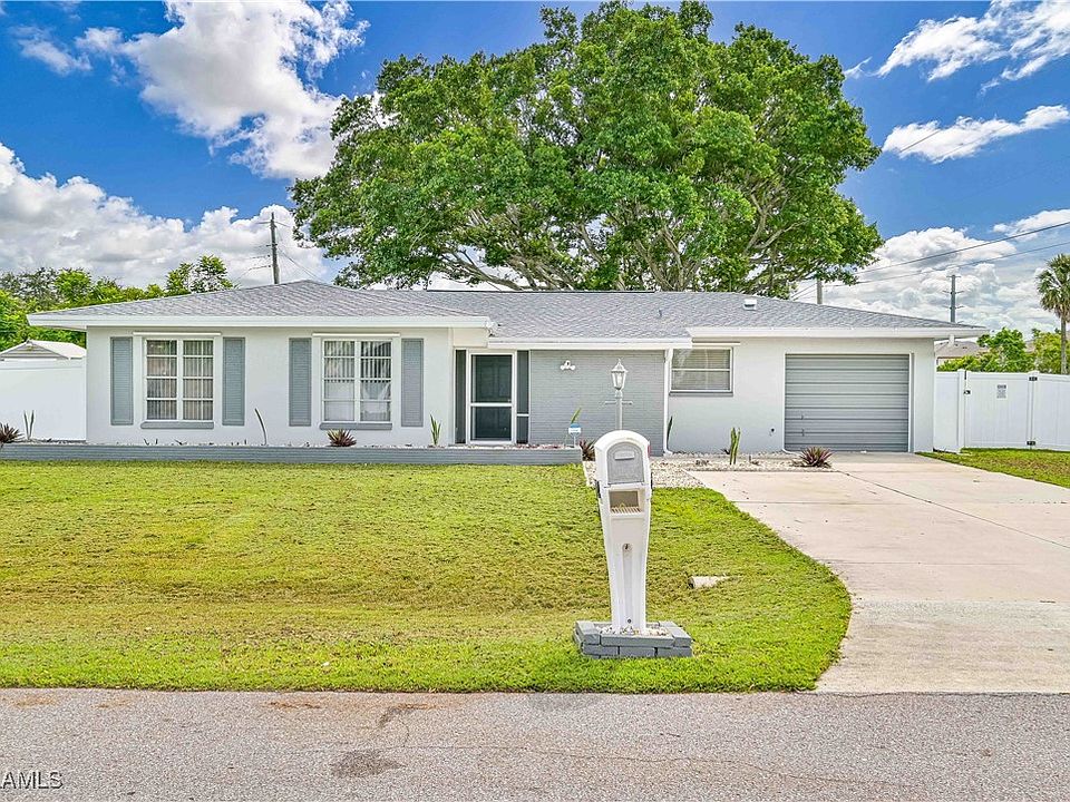 This updated 3 Bedroom 2 Bathroom home located in Convenient SE Cape Coral is close to shopping, downtown Cape Coral, Restaurants and so much more. Featuring a NEW Roof in 2023, NEW Kitchen with Solid Wood Cabinets and Quartz Countertops, Fresh Exterior and Interior Paint, Manual hurricane shutters, and Fenced Yard with plenty of room for a pool.