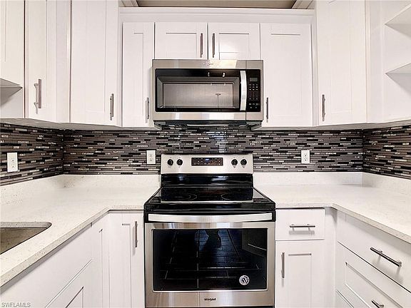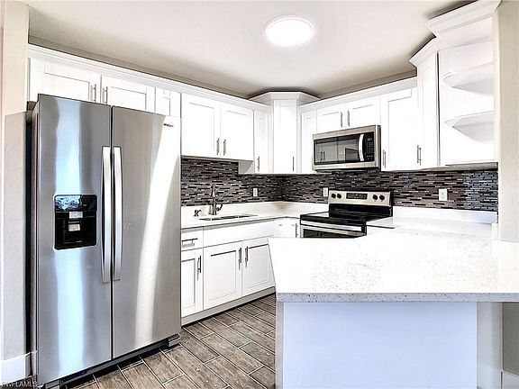 BUYER FINANCING FELL THROUGH! Amazing 3 bedroom 2 bath home located in SW Cape Coral with all Assessments paid. Completely remodeled from top to bottom. New paint inside and out, designer plank tile inside. New tall base boards with matching door casings. Top of the line kitchen with stunning white quartz accented by mosaic backsplash. All wood high end cabinets with shaker style doors and oversized hardware. Matching stainless steel whirlpool appliances. New fans and light fixtures through out. Both bathrooms have been fitted with polished porcelain tile with contrasting accent tile. New bathroom vanities with marble tops and all new fixtures. Every window fitted with custom blinds. New digital thermostat. Fenced in yard with fresh landscaping in front of the home. New exterior lights. This is a great starter home or a long term rental investment. Close to shopping, restaurants, hospitals, Del Prado and so much more. Come drive by and see your new home before its off the market!