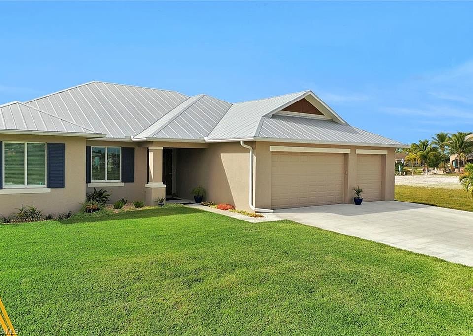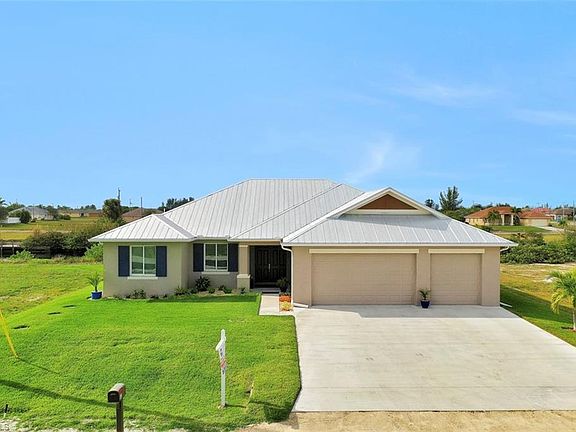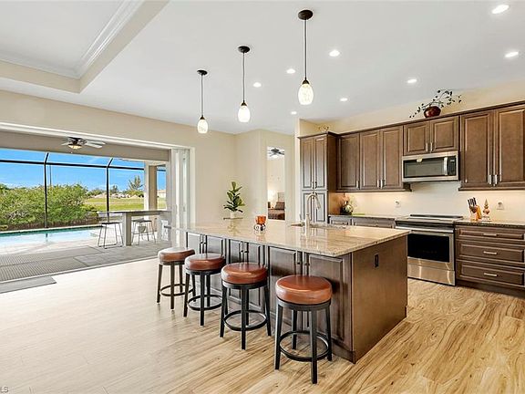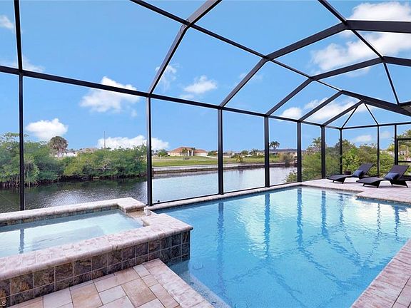 Don't wait to build your dream! Here is a home that is just like brand new without the wait. The home features a double door entryway, metal roof, impact windows throughout. The floor plan is a wide open great room with walls of impact glass sliders along the entire back of the home. The large gourmet chef's kitchen has a huge island, beautiful wood cabinets with soft close drawers, granite counter tops and stainless appliances. There is a walk in pantry with big enough to hold a second refrigerator. This home has two master bedroom suites with attached bathrooms, also a nice guest bedroom room plus a den. Outdoors there is an expansive lanai surrounding the sparkling pool and spa. There is a granite bar and outdoor refrigerator for all your entertaining needs. All of this is overlooking a gulf access canal with manatees right in the back yard! Good boating access to Matlacha pass. There is a three car garage with epoxy coated flooring and lots of storage space. Easy to view at anytime. You won't be dissapointed!