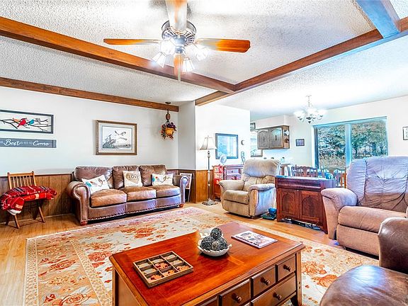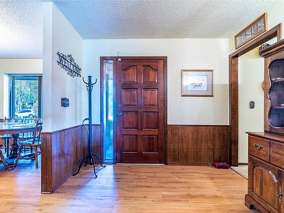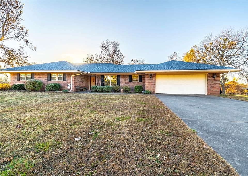 Welcome to your secluded haven in Shawnee, where the charm of country living meets the convenience of a short commute to the city! Nestled on just under 5 acres (MOL) of wooded splendor, this home offers a tranquil retreat from the hustle and bustle of everyday life. Step inside & the warmth of the main living area embraces you, adorned with custom built-ins that frame an inviting fireplace. Wooden beams overhead & updated vinyl flooring underfoot create a cozy atmosphere. The dining room, bathed in natural light from a large picture window, is just off the living room, creating an ideal space for family meals & entertaining. The thoughtfully designed kitchen boasts a wall oven & pantry, making meal preparation a breeze. Down the hall, 2 generous bedrooms offer comfortable living spaces, with a main bath featuring a Jack & Jill plan for easy access. The primary suite at the rear of the home offers a wealth of space & natural light, complete with double closets and ensuite 1/2 bath. Glass doors lead from both the master suite & the living room to a delightful sun porch, perfect for enjoying the beauty of the outdoors year-round. The outdoor space is where this property truly shines. Your own private park awaits, w/a large fenced area providing a safe & fun play space for little ones or furry friends. There is a 30x40 pole barn with two roll-up doors, offering pass-through access & equipped with electrical service, heat & air via window units & gas furnaces. Nature enthusiasts will delight in the property's pond at the rear, creating a serene backdrop for relaxation. Beyond the pond, discover walking trails that beckon you to explore the natural beauty surrounding your new home. If you're seeking a place to unwind & embrace the joys of life, this property has it all. Don't miss the opportunity to make this house your home – come and experience the unique charm and endless possibilities that await you in Shawnee. What are you waiting for? Your dream home awaits!