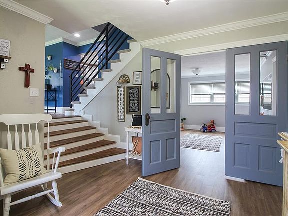 Welcome to this stunning split-level home where modern elegance meets practical comfort. Nestled on a spacious lot with a detached garage and expansive yard, this updated residence offers five bedrooms and three baths, for homeowners seeking both style and functionality. This home has TWO primary suites, one on the lower level and one on the upper level. Complete with a custom kitchen with new range, quartz countertops, luxury vinyl plank flooring, new carpet, and custom wrought iron banister.
