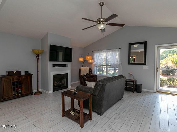 Charming 3-bedroom/2-bath home in Seven Lakes North offers a bright open floorplan on a beautiful lot near the gate. Step through the front door to a spacious living room with vaulted ceiling and gas log fireplace that is open to the kitchen and dining area. It has beautiful porcelain tile floors in the main living area and sliding glass doors that open to a nice screened porch that also has access from the primary bedroom. It overlooks a large, fenced backyard with a water feature. All of the bedrooms have carpet. The primary bedroom with en-suite bath has a vaulted ceiling and large walk-in closet. You will have access to lots of great amenities including access to the many lakes, community pool, tennis courts, playground, basketball courts and lots more!