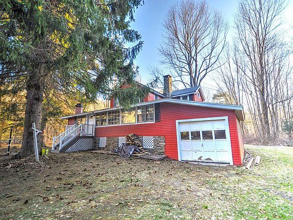 Set on 3+ acres on the Wallenpaupack Creek, this 3 bedroom farmhouse is a story book setting featuring an amazing fishing hole, a classic trout fishing stream. Enjoy listening to the creek from this 3 bedrooms, 1.5 bath home. This renovated farmhouse features authentic woodwork, hardwood floors, renovated kitchen, family room w/ wood burning fireplace & a wall of windows, wood doors, new deck, 1-car garage, beautiful grounds and low taxes. Investment opportunity - perfect Airbnb!, Beds Description: 2+BED 2nd, Beds Description: 1Bed1st, Baths: 1 Bath Level 2, Baths: 1/2 Bath Lev 1, Eating Area: Dining Area, Eating Area: Modern KT