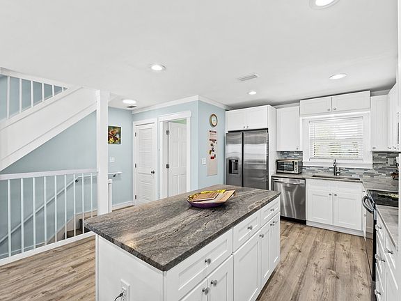 - Kitchen Island, Recessed Lighting, Shelving, Woodwork Painted, Ceiling Fan(s)