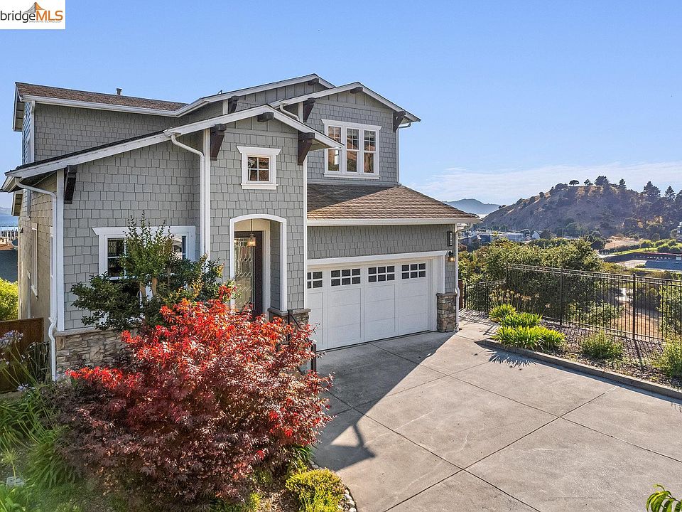 Located on unique corner lot at end of quiet cul-de-sac with stunning San Francisco and Bay views. Voluminous high ceilings throughout main level public entertainments spaces with wood floors throughout. Primary suite retreat with stunning SF views with spa-like ensuite. Thoughtful floorplan has generous two bedrooms + additional family room + full bath on separate level with direct access to patio deck and gardens. Only 20 minutes from Berkeley! Best kept secret -- the best weather in the East Bay!