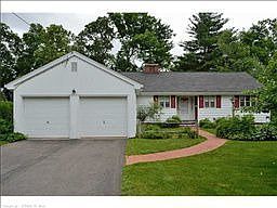 Charming light filled ranch, 2 beds, 1.1 baths, 2 car attached, 1391 sqft, eatin kitchen, dining room with built in corner cabinet, office off the dining room, large Living room with fireplace and built-in bookcases, porch has electric heat, central air, Underground sprinklers, generator switch, newer above ground oil tank, lower level rec room w/fireplace finished area approx. 26x13, all appliances are "as is", close to west farms mall, cornerstone pool, veterans skating rink, golf course & art league, conveniently located.