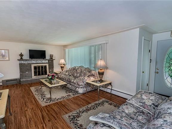 Tasteful charms abound in this move in ready 3 bedroom brick ranch with an open concept living plan! Lots of natural lighting compliments the living room with cut stone fireplace, adjacent dining room with rich wood floors and an equipped kitchen underscored by tiled flooring! So neat and tidy with lower level family/game room with bar, equipped laundry, heated integral garage along with an detached 2 car garage, Amish garden shed, lovely accent landscaping, covered front porch and rear patio, updated electrical system and replacement windows!
