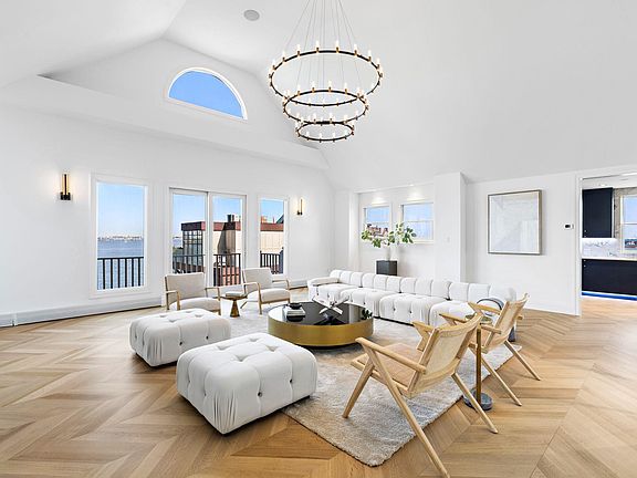 Residence 57 is a 2-floor 4-bedroom, 3-bathroom Penthouse offering an expansive 3000 square feet of elegant living space. Nestled in the gated community of Port Liberte, this residence boasts breathtaking panoramic views of the Hudson River, the iconic NYC skyline, and the majestic Statue of Liberty. Upon entering, you are greeted by the grandeur of white oak chevron floors and a glass walk-in wine cellar. The gourmet eat-in kitchen boasts Sub-zero and Bertazzoni appliances, offering the ideal setting for culinary excellence. The three luxurious bathrooms feature Grohe faucets and shower systems and Duravit commodes. This versatile layout offers a spacious bedroom with en-suite on the main level and 3 additional bedrooms on the lower level with a bonus room for storage or home office. Unwind in the primary suite, where a serene sitting area features a 64-foot balcony creating a captivating space to savor the unobstructed views of the Hudson River and Manhattan. Additional primary suite features include a custom walk-in-closet and en-suite bath with a luxurious deep soaking tub, separate frameless shower and floating vanity. Residents of this prestigious address enjoy access to a private gym with saunas and massage room, 2 pools as well as tennis and basketball courts, a marina, playground and dog park within the gated community and are only steps to the New York Waterway Ferry Terminal with direct service to Pier 11 at Wall Street.
