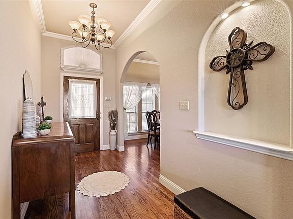 AMAZING LOCATION! This adorable home checks off all of the boxes. It has a dreamy 4 bed 2 bath split floor plan featuring intricate crown molding, a dining room that can easily be an office, a feature wood burning fireplace, & a super-sized laundry room that has a sink, cabinets & counter space for folding laundry! The master en-suite features two sinks, a walk-in shower, a jetted tub with waterfall and a HUGE closet that is to die for! The kitchen is extra roomy with an island, double wall ovens, a flat cook top, a built in desk, walk-in pantry, AND a bonus vegetable sink. You'll be able to entertain in the kitchen then access the amazing back patio overlooking a massive backyard. Call today to make it yours!