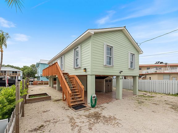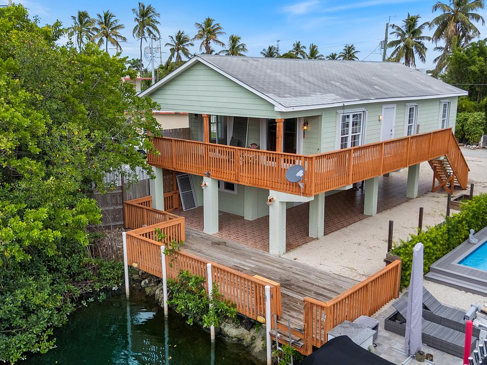 This charming three-bedroom, two-bathroom home at 102 Snapper Creek Drive in Layton offers waterfront living at its finest. Built in 2005, the property features high ceilings, wood floors, and double sliders that open to a spacious porch with stunning Sunset views. The kitchen is equipped with wood cabinets, solid surface counters, a breakfast bar, and stainless steel appliances. Plus, there's a large storage room downstairs for all your belongings. It's the perfect weekend getaway or starter Home in The Keys.