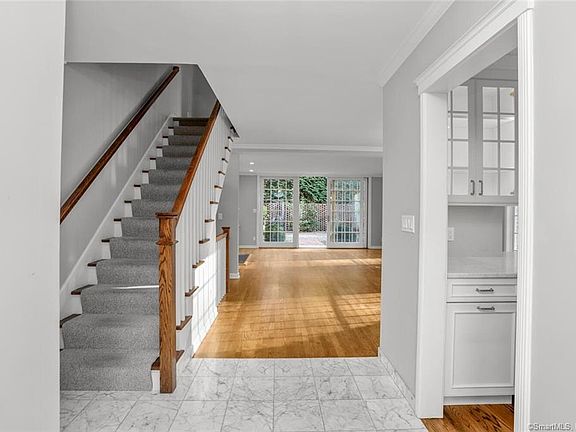 BEST IN CLASS Pristine Georgetown-style brick townhouse in prime New Canaan location. This 1800 SF end unit with 3 fully finished floors is light-filled, has high ceilings, large picture windows, hardwood floors, built-ins, and fireplace. Fresh and bright kitchen with stainless appliances, tile backsplash, and white marble counters and a breakfast bar which opens to the large dining living area, fireplace, built-ins. Sliders open to a private large brick-walled outdoor garden patio space with sunny southern exposure. The two ensuite bedrooms, both with ample closet space, are on the upper level. The fully finished LL includes a large 3rd bedroom, full bath, office & laundry.
