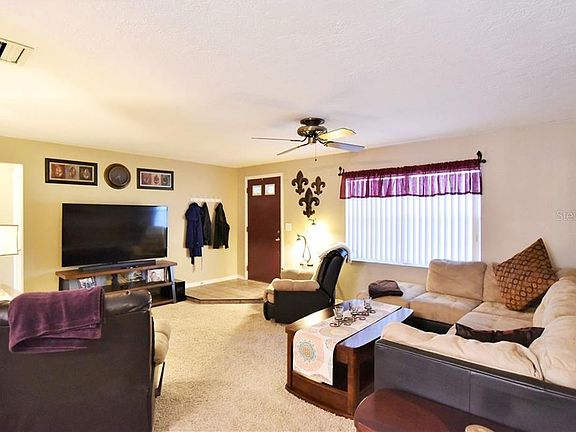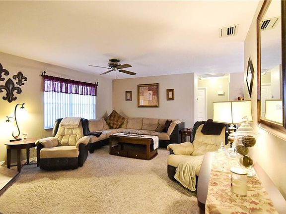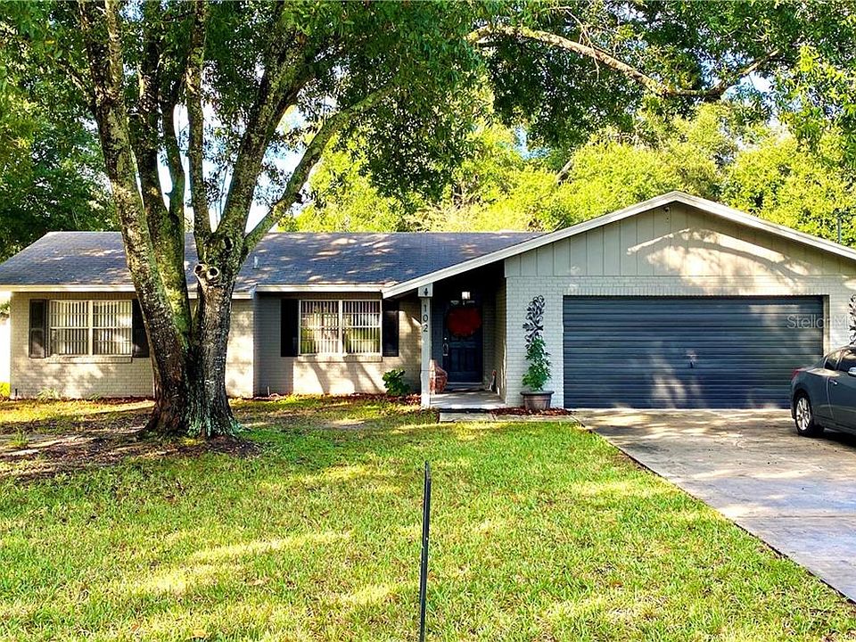Wonderfully updated home in a small, quaint neighborhood that features a Community pool, tennis courts, basketball and covered Pavilion area! This charming 3bed/2bath home offers a split bedroom plan, formal living and dining area plus a wonderful family room off of the kitchen. Kitchen features updated white cabinets, updated appliances and tiled counter tops and is open to the family room. The family room offers a lovely brick wood burning fireplace and glass sliders than open to 16x31 patio and oversized backyard. The master bedroom has a large walk in closet. Master bath has an updated tile shower surround, cabinets and counter. The guest bath has updated cabinets & counter. The flooring is wood laminate in the family room, tiled wet areas, kitchen & dining and the remaining carpeted. The A/C system is approx. 16 months new and the home's exterior was repainted in 2018. The location is ideal, at the end of a short street with very little traffic. The monthly HOA fee of $96 covers your water and use of the Community pool & recreational areas. Easy access to Interstate 4, convenient commute to the Orlando area. This home is a must see!