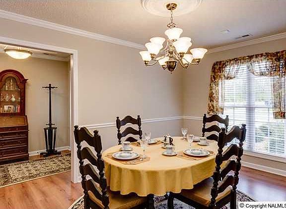 For more information, contact Roy Claytor at (256) 656-2921. Visit http://www.crye-leike.com/huntsville/844287 to view more pictures of this property. SPOTLESS, FULL BRICK, RANCHER 5 MILES SOUTH OF HAMPTON COVE! ISOLATED MASTER, WHIRLPOOL & GLAMOUR BATH, VAULTED CEILING & FAN IN GREAT ROOM. FORMAL DINING W/LAMINATE WOOD FLOORING & TILE IN WET AREAS. CUL-DE-SAC LIVING IN A QUIET NEIGHBORHOOD. CAT 5 WIRING FOR COMPUTERS, WIRED FOR SURROUND SOUND IN GREAT ROOM. ADDITIONAL ATTIC INSULATION (12 INCHES DEEP), LOTS OF STORAGE PLUS A LIVE KOI POND OUT BACK.