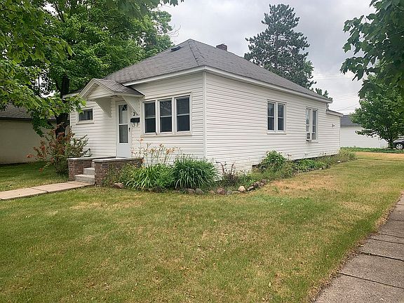 This newly painted, well-maintained and clean 3 bedroom 1+ bath home is located on a premium corner lot in a safe and quiet neighborhood in the City of Spooner. Great floor plan featuring large dining room and living room with wood laminate flooring throughout. Inviting kitchen with tiled floor; dishwasher, double oven and refrigerator included. Bedrooms are of a desirable size with carpet in two and wood laminate in the third. Full bath with large built-in linen cabinet. Lots of natural lighting featuring drop down double pane windows for easy cleaning throughout the home. Convenient tiled laundry/mud room with large closet just off the kitchen. Very clean, older dry basement which provides an additional toilet, stand-up shower and porcelain utility sink. Large backyard with mature trees and poured concrete sidewalks. Spacious 2 car detached garage offers an additional workbench area with shelving and a wood burning stove.