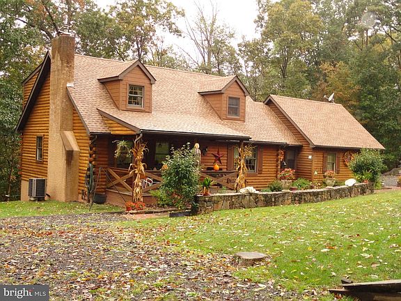 Get ready to enjoy the ambiance of this country setting while still being only minutes away from small town USA. The home rests comfortably on this 4.5 acre wooded lot and gravel road used only by local residents. Built in 1995, this very special log home has been well maintained and enjoyed by its long time owners. The home offers the rusticity of real log construction yet with modern features like custom oak kitchen and baths, and central air conditioning. The 14' x 12' kitchen and 15' x 14' adjoining dining room create one large country kitchen with hardwood floor, corian counter top and breakfast bar with Jenn Air cook-top, pantry, and plenty of cabinet space. Also on this level is the 17'x 14' Great room with stone wood burning fireplace, vaulted ceiling and 13' x 14' loft. (This loft area could easily be turned into an additional bedroom if needed). The lower level also offers a 13' x 12' bedroom with a portable sauna and a full bath. Besides the loft area, on the upper level is the 18' x 13' Main bedroom with twin closets, full rear dormer, vaulted ceiling with skylights,direct access to full bath, and sliding door to private deck. Down below is the full basement with 13 course block foundation giving you plenty of height if you want to finish the basement for additional living space. You'll love the walk-out on grade feature of this basement. The laundry is also located in the rear of the basement making it very convenient for those who love to hang their laundry outside to dry. The home is heated with a heat pump with an oil backup system for efficient heating plus a basement Quadra-fire woodstove for those who enjoy burning wood. The living room fireplace was also built with a heatilator for efficiency. There is also a spacious breezeway which connects your house and garage. Outside the home you'll appreciate the large rear deck, oversized macadam driveway, a few outbuildings which includes a 12' x 24' workshop, and lots of landscaping.