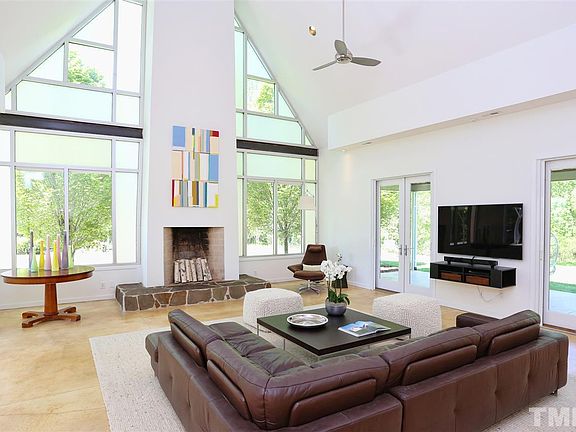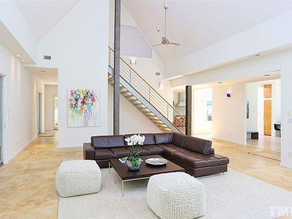 Modern minimalist home with grand areas for entertaining inside and outside. Tranquil country living on 5.5 acres of pasture and majestic trees, 2 mi to dwntwn Carrboro. Versatile rooms & high-wattage style. Concrete+maple flrs+soaring ceilings+glass-walled hallways+stunning FP. You may never want to dine-out: thoughtful design+handcrafted cherry cab+granite+glass tile+all gourmet appliances. Ultimate at-home vacay: lounge poolside then steam, sauna & shower outdoors! Adj 7ac avail 1 st to new owner.