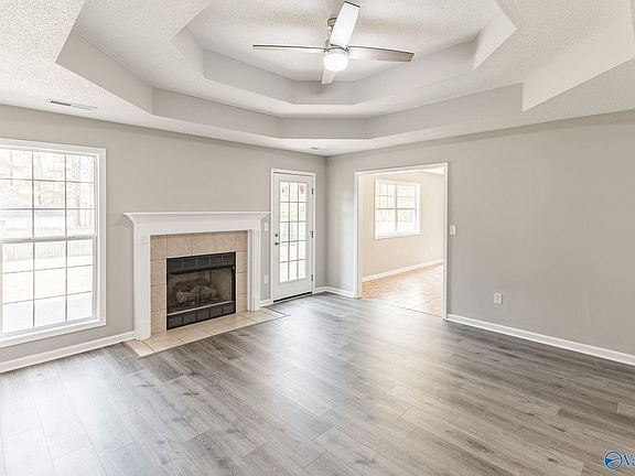 2/1 rate buy down available. PRIVATE LENDER available! Culdesac home w/ NO HOA! No carpet + all new flooring, the chic + popular SW Agreeable Gray paint throughout, crisp quartz countertops + new stainless steel appliances that convey! The living room is open w/ double tray ceilings + cozy fireplace. Enjoy ample natural lighting inside + a light and bright kitchen that will make you enjoy the mundane tasks of cooking + cleanup ;) Oversized lot is privacy fenced + located within 25 min. of Huntsville International Airport, Arsenal Gate 9 + Mazda Toyota manufacturing plant. Come envision yourself in a home thats updated! Seller a lic. real estate agent.