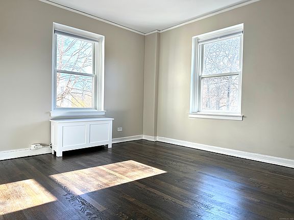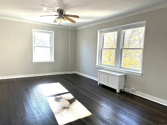 This end unit is unique because it has no shared walls with neighbors. It is a stunning unit with beautiful refinished hardwood floors, lots of windows, high ceilings, fully redone kitchen cabinets, freshly painted, plaster walls, curved archways and pretty views. The parking lot is just steps away. Two spaces are included. Woodside Green is located about a mile from the train station. It is an easy walk to downtown. There is shopping, gym, Starbucks , restaurants just across the street from the complex. The grounds are lovely with specimen trees and a park-like setting.