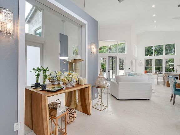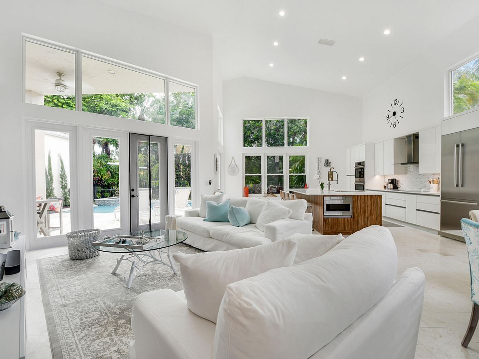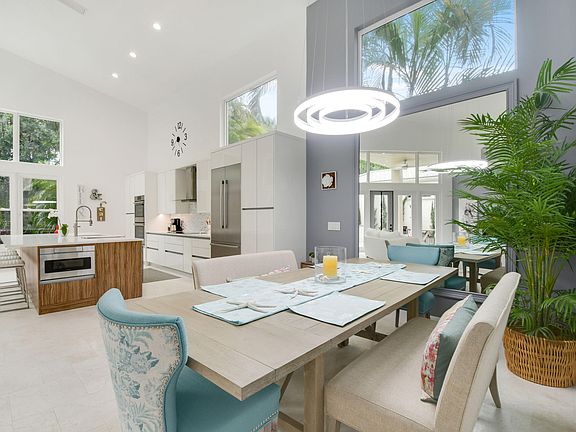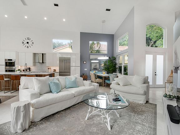 Situated in the picturesque Palm Beach Gardens neighborhood of Sunset Bay, this meticulously updated home is an exercise in artfully executed modern design. Guests enter to soaring ceilings and a great room dappled in natural light from floor to ceiling windows opening to the pool deck and backyard. In keeping with the home's flawlessly executed aesthetic, an open floor plan provides a seamless transition to the home's elegant kitchen and breakfast nook. Best in class appliances, nestled amidst sleek bespoke cabinetry, bolstered by a spacious island with bar seating provide a tasteful compliment to the home's common area. A sprawling ground floor master with private access to the pool deck is paired with a spacious en suite; echoing the fit and finish of the kitchen quality is exuded in