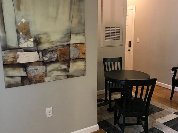 AVAILABLE November 20,2025 - This is a FULLY-FURNISHED, 2 bedroom, 2 full bath unit on the GROUND FLOOR, no stairs into unit. The kitchen is stocked with plates, glasses, pots and pans, and cutlery. The location is convenient to Moses Cone Hospital (1 block away) and easy access to Wendover Avenue, a central thoroughfare. Latham Park is walking distance as are places to dine and relax. Downtown Greensboro is a bike ride away as well. NO SMOKERS need to inquire. The view out the back is green and lush. Ample, free unassigned parking and on-site dumpster for garbage and recycling. This is perfect for a nice place to land as you search for a home to buy or are in a transition in life. Flexible lease terms; minimum 60 day lease, then with 30-days notice, you can depart without penalty. Can do a FaceTime tour if needed got out of town interest. We own and manage the property.