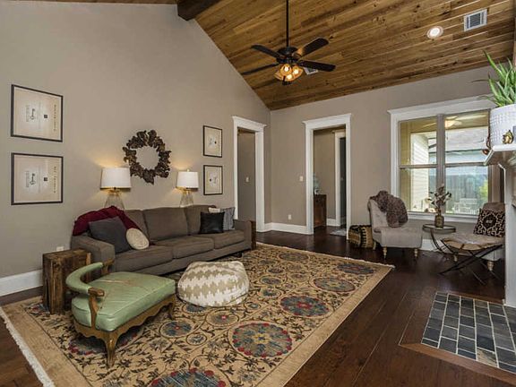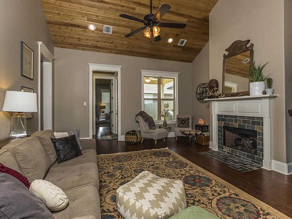 102 Sunset Point Lafayette, LA 70508 is a 3 bedroom, 2 bath home with 1589 square feet. This open floor plan home offers a warm color scheme, rustic tongue and groove cathedral ceiling in the living room along with wood flooring, and a gas fireplace. The kitchen has custom, wood cabinets with travertine counter tops with chiseled edges, under cabinet lighting, Subway tile back splash, and stainless steel appliances.